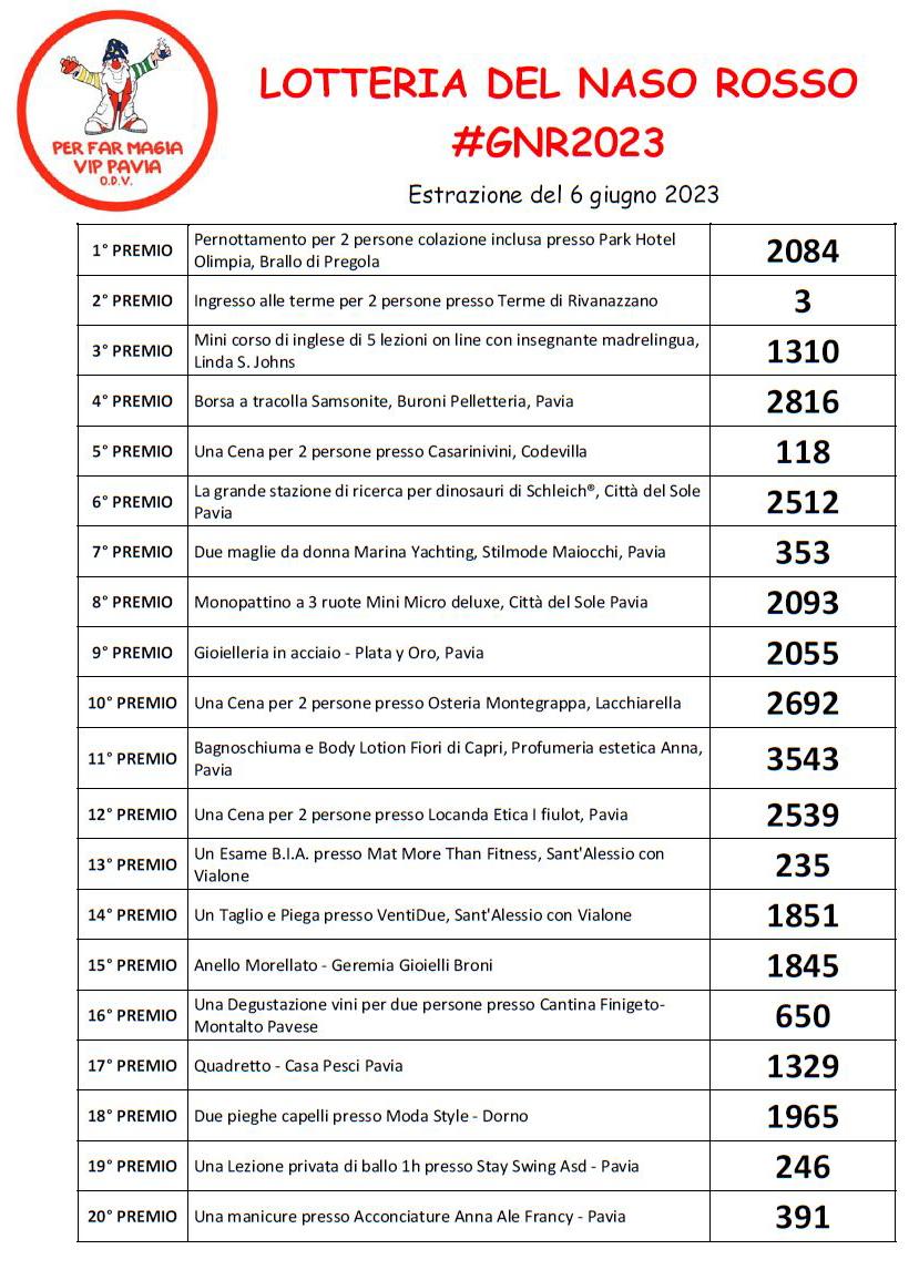 ESTRAZIONE LOTTERIA 2023